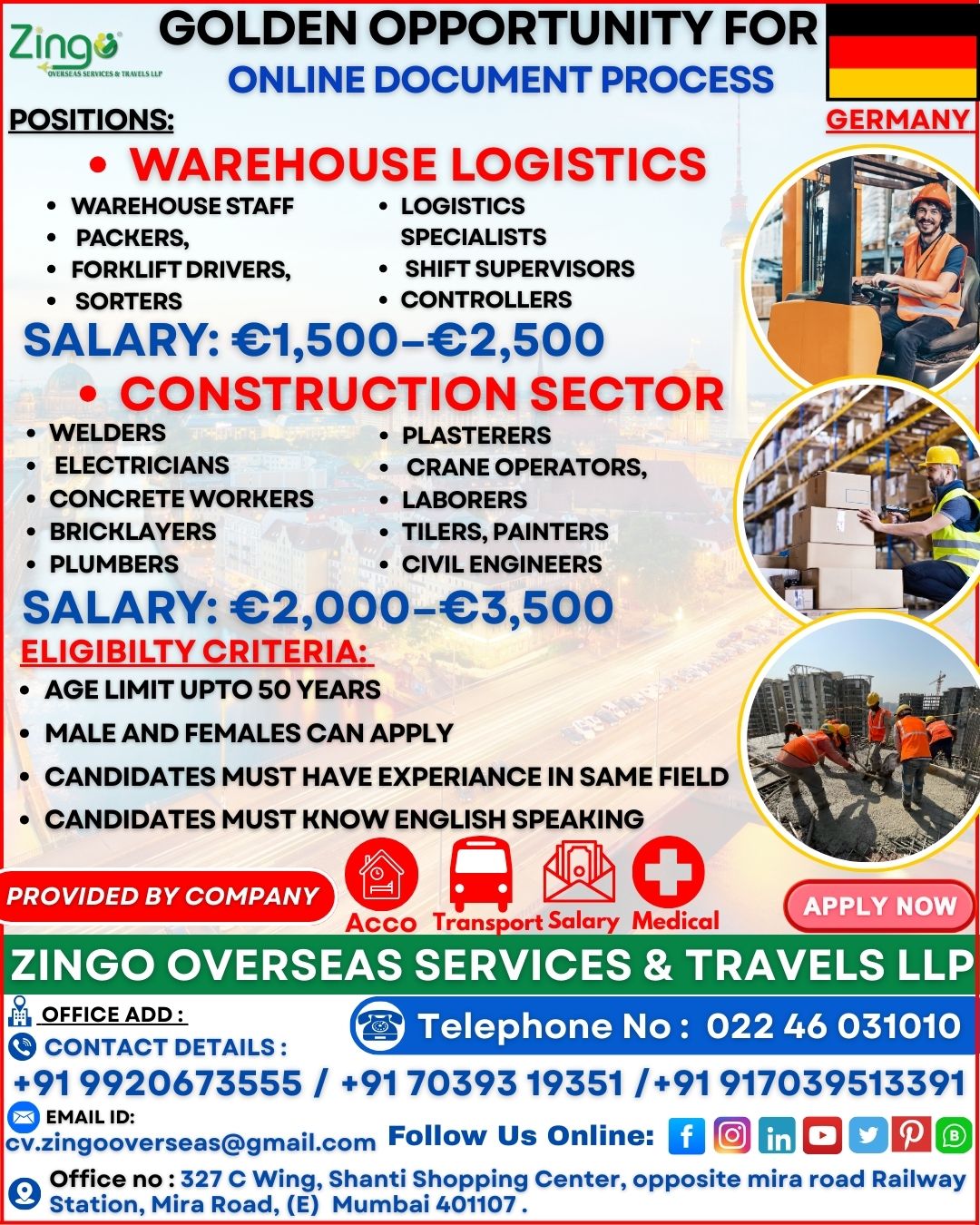 POSITIONS:WAREHOUSE LOGISTIC WORKERS AND CONSTRUCTION WORKERS