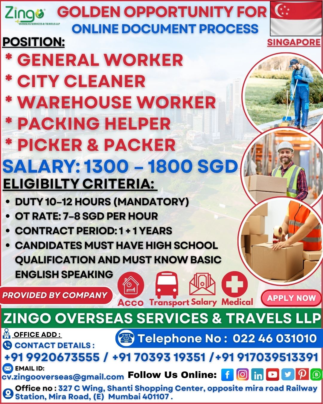 JOB VACANCY FOR SINGAPORE